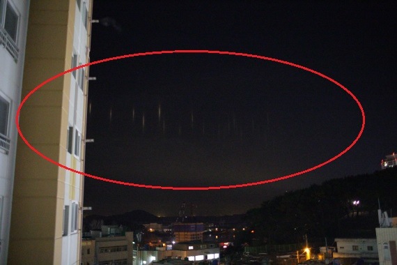 Işıklar Busan’ın Haeundae Bölgesinin üzerinde belirgin olarak görülebiliyordu ve bir netizene göre “Hafif sütunlar gökyüzünde yaklaşık 30 dakika boyunca geziniyordu” ve yerel yönetimden herhangi bir havai fişek ya da gece olayı olup olmadığını sorduklarını söyledi. Ama o gece herhangi bir olay gerçekleşmemişti. Dolayısıyla bu olay insanlar arasında merak uyandırmaya başladı.