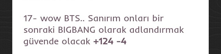 17- wow BTS.. Sanırım onları bir sonraki BIGBANG olarak adlandırmak güvende olacak +124 -4