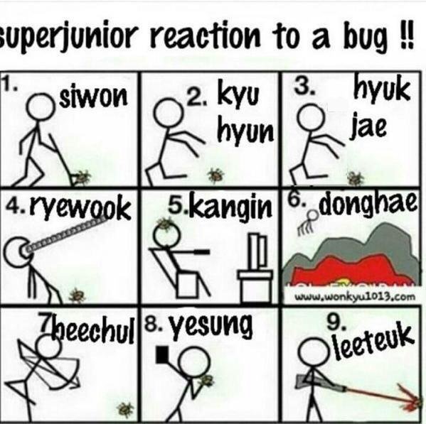Insitz‘de popülerlik kazanan karikatür EXO üyelerinin bir böcek ile karşılaştıklarında nasıl tepki verecekleri gösteriliyor.