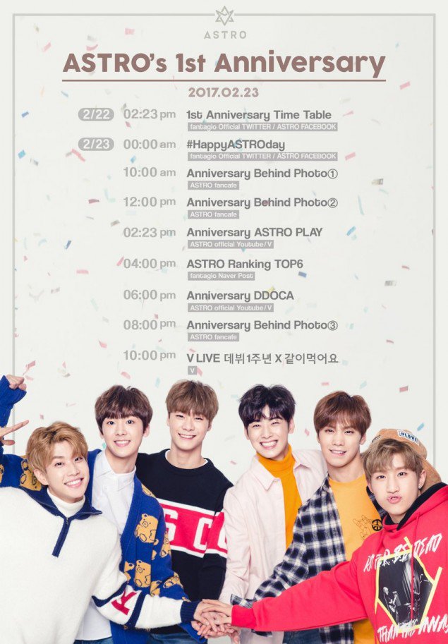 ASTRO 23 Şubat 2016’da çıkış yaptı, yani yıldönümleri büyük bir hızla yaklaşıyor. Çizelgenin yayımlanması ile başlayan liste hayranları için tüm gün boyunca yapacakları etkinliklerle dolu.