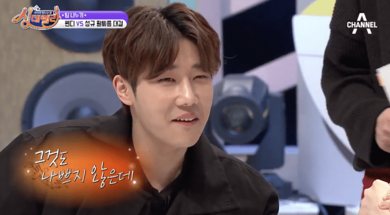 Bilek güreşi başladığında Sunggyu güldü ve Wendy’nin yenmesine izin verip vermemesi konusunda emin olmadığını söyledi. MCler de Wendy’yle el ele tutuşmaya devam edebilmek için zamandan çaldığını söyleyerek Sunggyu’ya sataştılar. Doğrusu Sunggyu da bunu reddetmedi.