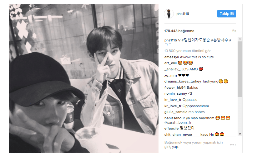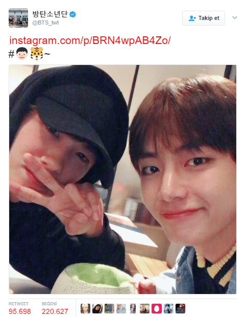 Birkaç dakika sonra, Kim Taehyung BTS’nin Twitter hesabından başka bir fotoğraf paylaşarak Park Hyung Sik ile bağlantı kurdu.