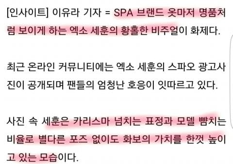 “Exo Sehun’un mest eden görseli ile ucuz kıyafetleri bile lüks bir markaya çevirebilirsiniz. Sehun’un karizması ve modellere taş çıkardan vücut oranları ile belli bir poz vermese bile, her resmi sanki fotoğraf çekimlerinden fırlamış gibi.”