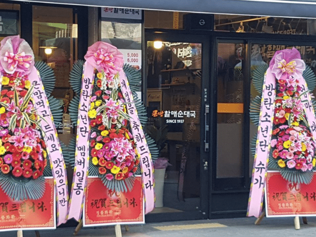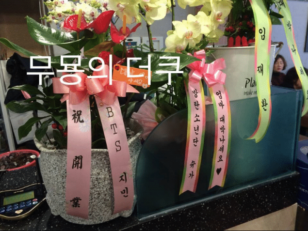 Mesajlarda, “Açılışını tebrik ederiz- BTS Üyeleri, “Anne umarım çok başarılı olursun- BTS SUGA”, ve daha fazlası yazıyordu. Ayrıca çekilen fotoğraflarda Super Junior‘dan Heechul’un de bir çelenk gönderdiği görülüyor.