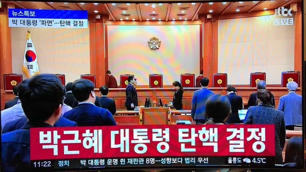Güney Kore’de Anayasa Mahkemesi, Aralık 2016‘da parlamentonun Devlet Başkanı Park Geun-hye hakkında verdiği azledilme kararını oy birliği ile onayladı.