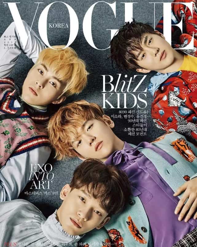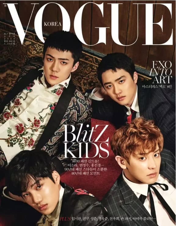 EXO grubu, ”Vogue Korea” nın Nisan kapağında romantik ve şık erkeklere dönüştü.