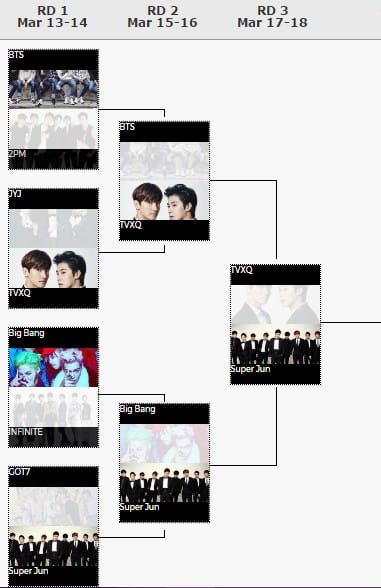 Mart ayında düzenlenen “March Madness” (NCAA Basketbol Turnuvası) gibi K-pop grupları içinde böyle bir şey düzenlemenin ilginç olabileceği düşünülerek en iyi erkek grubu için bir turnuva düzenlendi.