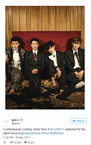 EXO üyeleri ‘Gucci‘nin resmi Twitter hesabında yer aldı.