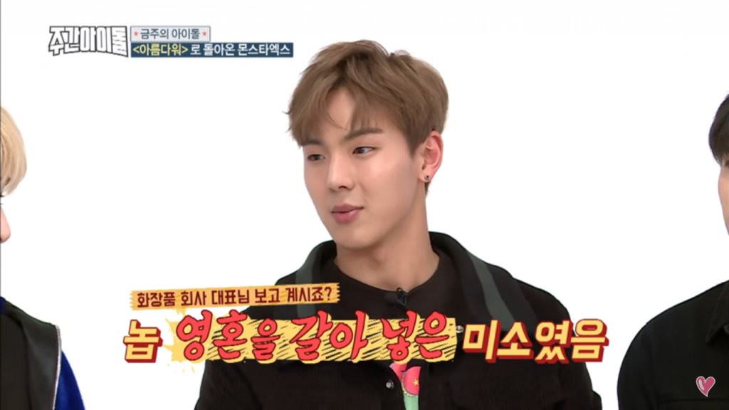 5 Nisan’daki Weekly Idol bölümünde Kihyun, Shownu‘nun reklam kazancını grupla eşit olarak paylaştığını açıkladı. Jung Hyung Don ve Defconn, Shownu‘nun iyi niyetine övgüde bulundu.