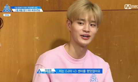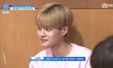 Ç/N:Bilmeyenler için Lee Daewhi bir ay önce Pick Me (Nayana) için merkez olarak seçildi- yani Nayana YT’a yüklendiğinde ve P101 başlamadan önce seçilmişti .Üçüncü bölümün ilk yarısında stajyerlerden kimin merkez olacağının nasıl seçildiği gösterildi ve her stajyer,onlar için oy veren diğer stajyerleri kazanması için Nayana şarkısında kendi sunumlarını gerçekleştirmek zorundaydı.Şimdi ise bir takım görevi yapmak zorundalar ve tekrar takımlarının merkezlerini seçmeleri gerekiyor.Lee Daewhi merkezde olmayı kazandığından beri kendi takım görevi için kendi üyelerini seçti.Sarı saçlı olan Lee Daewhi’nin aşağıdaki sahneleri takım görevi sırasında olanlardır.(ingilizce kaynaktaki not kısmı)
