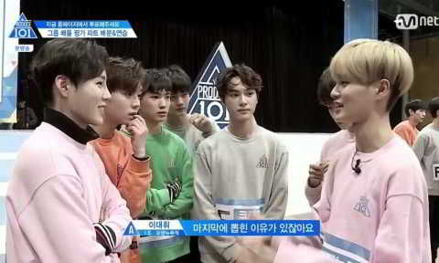 Onun takım üyeleri arasında Park Jihoon, Bae Jinyoung, Joo Haknyeon ve Ha Sungwoon’un da yer alıyordu.Onların hepsi sevdiğim stajyerler ama Lee Daewhi “Biz Avengers’ız” dediği zaman çok kendini beğenmiş gibi geldi.Bu onun hiç de iyi görünmesini sağlamadı.
