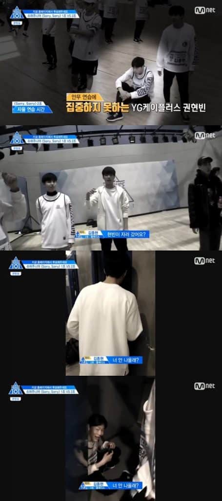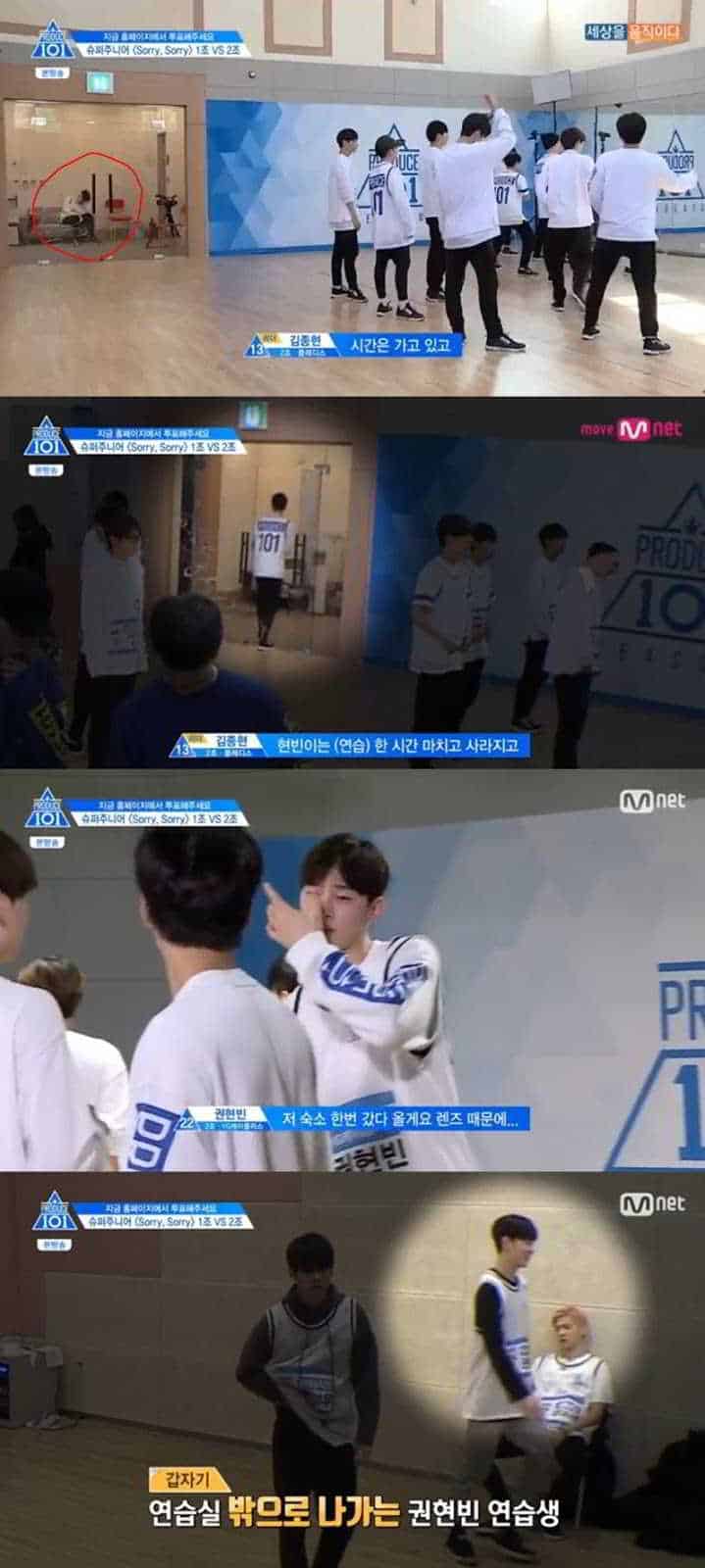 Belirlenen takımların yarışmasında, stajyer Kwon Hyun Bin ekip arkadaşlarının çaba sarf ettiği pratiklere aktif olarak katılmadı.