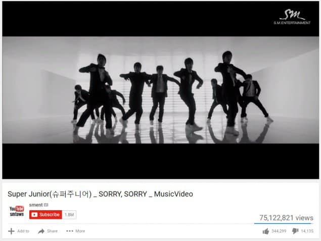 Super Junior’un “Sorry Sorry” şarkısı 75 milyon izlenme sayısına ulaştı.