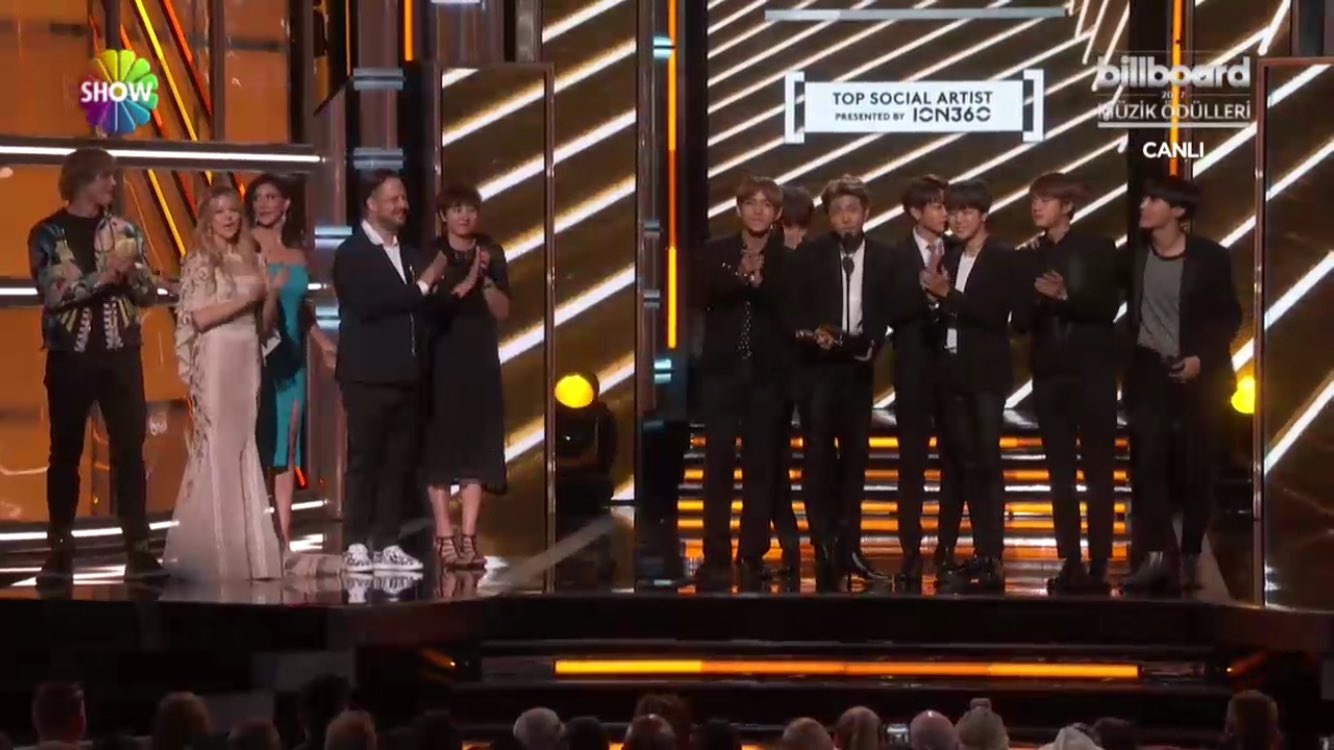 .@BTS_twt accepts Top Social Artist presented by @ion360, thanks to you guys! ? #BBMAs pic.twitter.com/lZWEuYXp6I