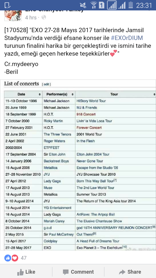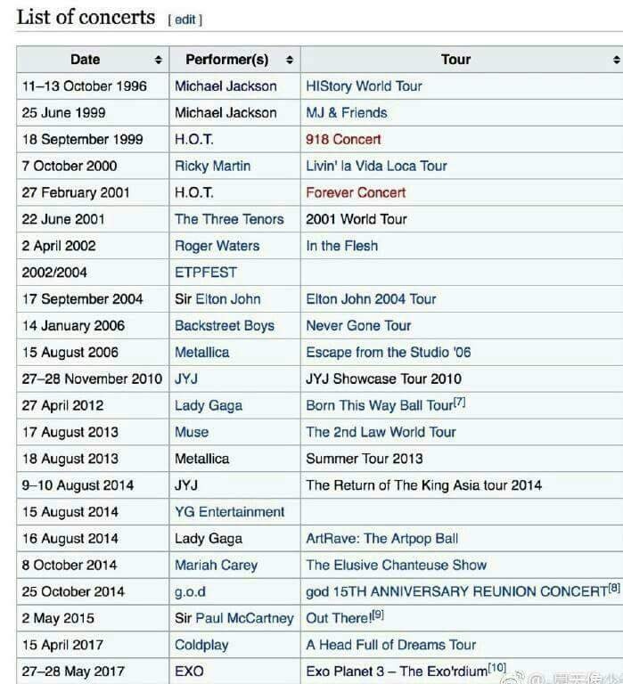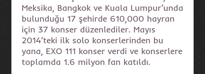 Seul Olimpiyat Stadyumu, diğer bilinen adıyla Seul Dünya Kupası Stadyumu, Kore’nin en büyük konser alanı olup 50,000 kişinin aynı anda eğlenebileceği bir alan. EXO, 2015’de Gocheok Sky Dome’da ilk performans sergileyen grup olmakla kalmayıp, birinci ve ikinci kuşak gruplarından H.O.T, god ve JYJ’den sonra Seoul Olimpiyat Stadı’nda solo konser düzenleyen ilk idol grubu oldu.