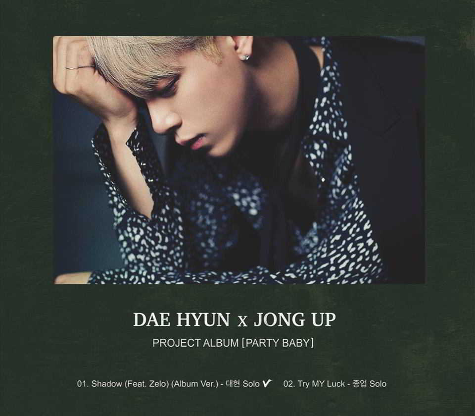 Daehyun ve Jongup’un işbirliği albümünün ismi “Party Baby” (grubun 2017 Dünya Turu ile aynı adı taşıyor) ve albümde iki idolün düet çalışmasına yer verileceği aynı zamanda farklı çalışmlarına da yer verileceği açıklandı. Daehyun’un kendi bestesi olan “Shadow” Zelo ile ortak çalışmalarından oluşacak ve Jongup ise “Try MY Luck” şarkısını seslendirecek.