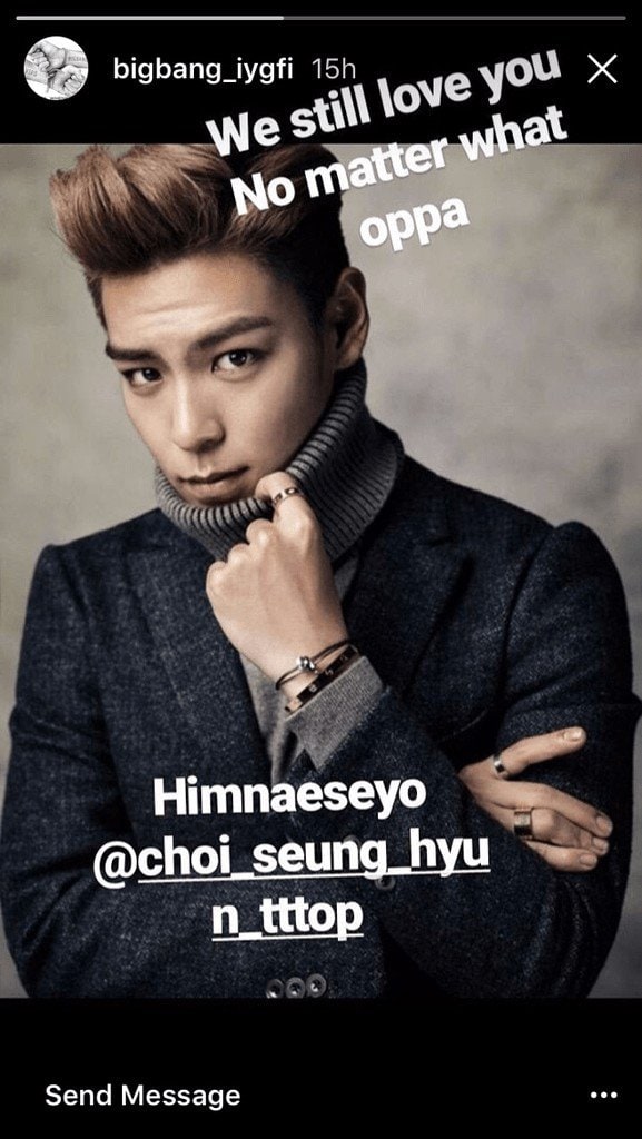 Haber yayınlandıktan sonra, hayranları, T.O.P’yi hedefleyen, #AlwaysHereForTOP etiketi ile cesaret verici mesajlar yayınlamaya başladı.