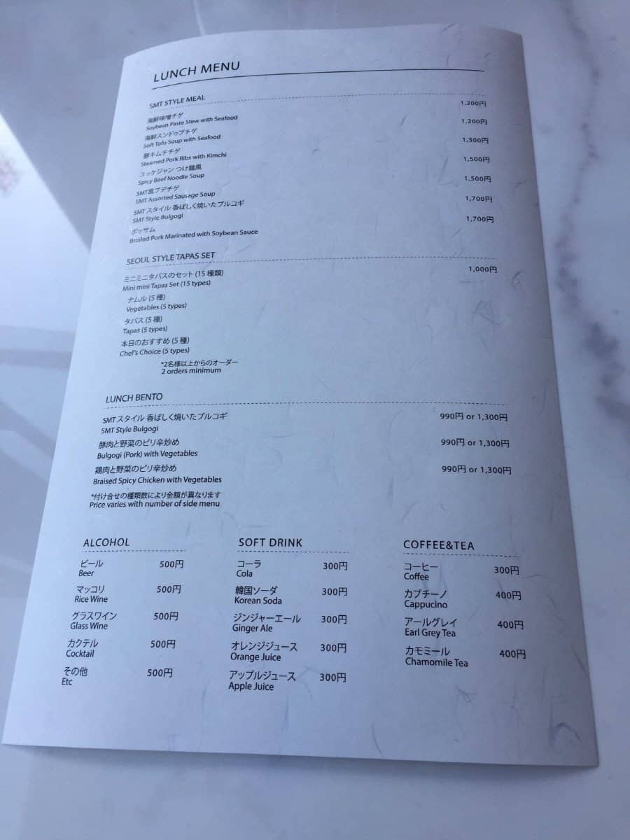 SMT Tokyo, tamamen Kore tarzı yemekler ve tapas tarzında yemek deneyimi sunan iki katlı bir restoran.