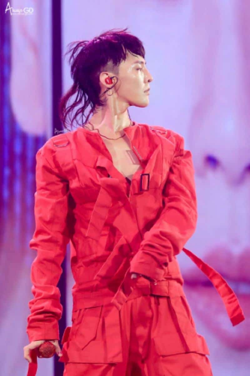 Sallanan “mullet” tipi saç stili G-Dragon’un üzerinde iyi görünüyor.