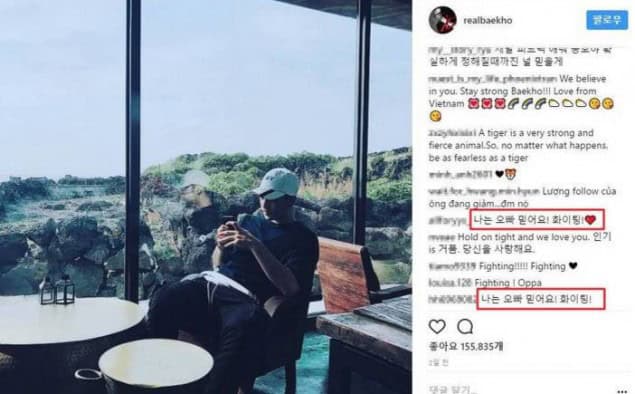 22 Haziranda birçok hayran Baekho’nun Instagram hesabına onu yüreklendiren mesajlar bıraktı. “Güçlü kal Baekho!!!”, “Oppa sana güveniyorum Fighting!”, “Ne olursa olsun bir kaplan kadar korkusuz ol” (Baekho’nun anlamı Beyaz Kaplan)