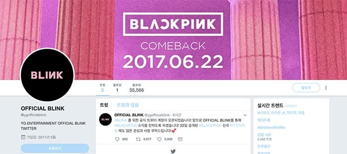 YG Entertainment, BLACKPINK hakkında en yeni haberleri paylaşmak için BLINK olarak da bilinen BLACKPINK hayranları için resmi bir Twitter hesabı açtı.