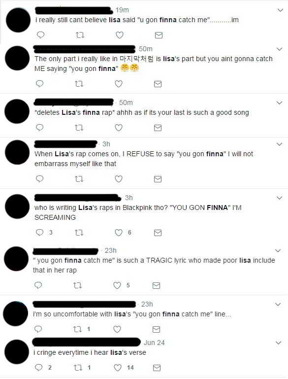 “Blackpink’de Lisa’nın rapini güya kim yazıyor? ‘you gon finna’ çığlık atıyorum”