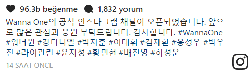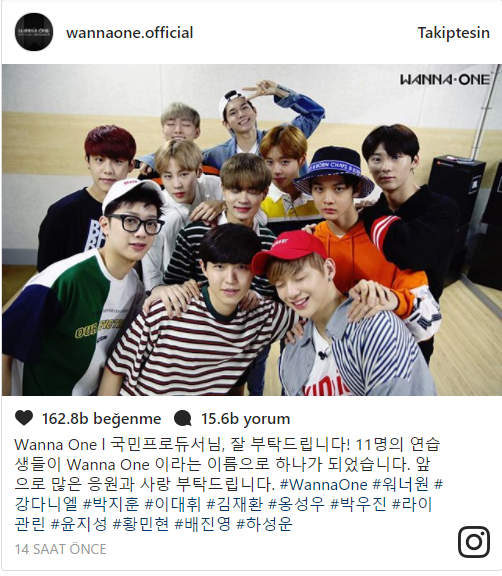 26 Haziranda Wanna One resmi instagram hesaplarını açtı ve ilk grup fotoğrafını “Ülkemizin üreticleri,lütfen bizi gözetleyin!11 stajyer bir Wanna One adı altında bir araya geldi.Lütfen bize gelecekteki sevginizi ve desteğinizi vermeye devam edin. ” başlığıyla paylaştı.