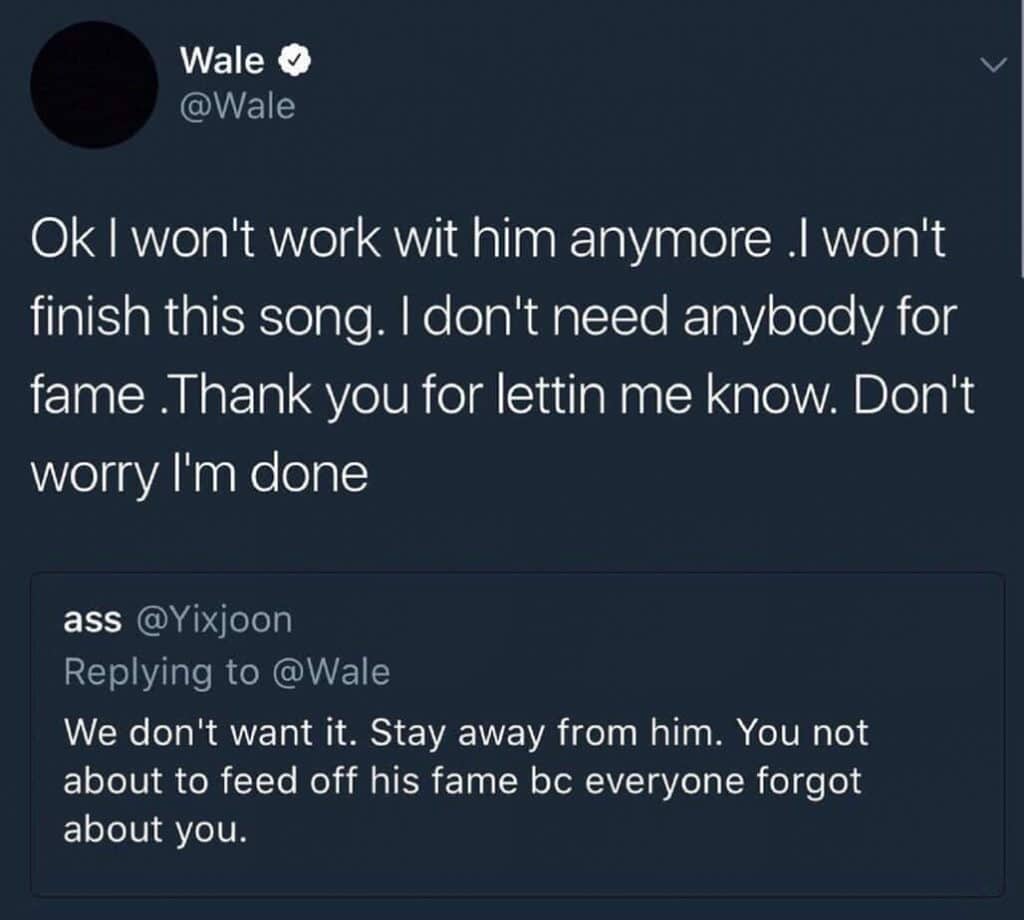 Ne yazık ki, Twitter kullanıcılarının Wale’in Rap Monster’ı para ve ilgi için kullandıklarıyla ilgili kötü niyetli söylentileri yayması ilk kez olmuyor.