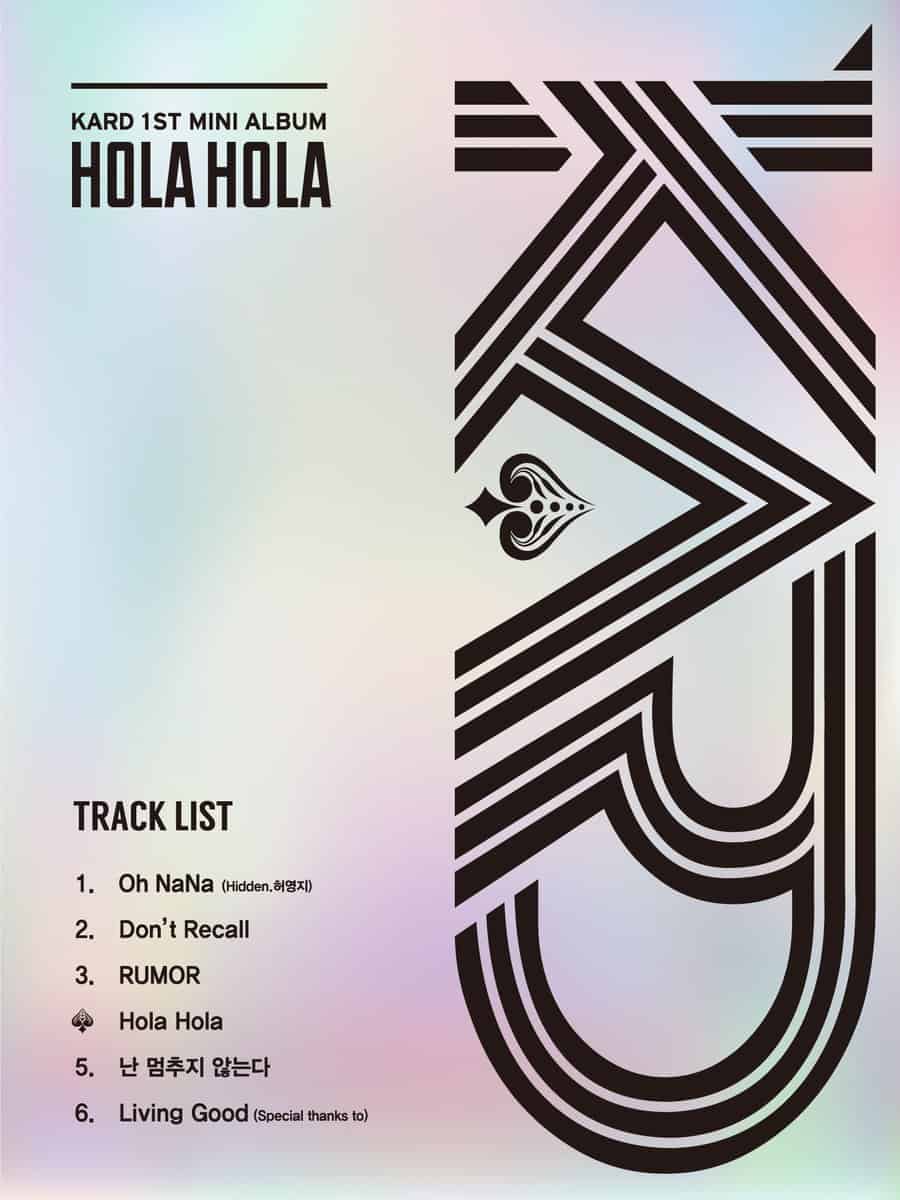 Kore saatine ve tarihine göre 07 Temmuz‘da K.A.R.D’ın çıkış mini albümü “Hola Hola”da yer alan şarkıların listesi yayınlandı.