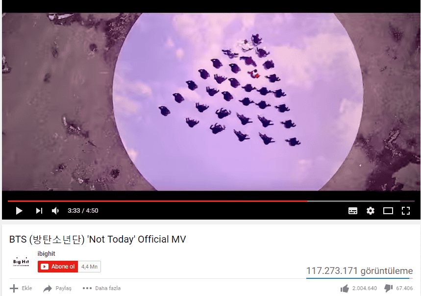 BTS’in “Not Today” müzik videosu 2 milyon beğeni alarak bu sayıya ulaşan BTS’in üçüncü müzik videosu oldu. Üyeler ”Spring Day” sarkısıyla şubat ayında bir milyon begeni almıştı ve 5 ay içinde bir milyon beğeni daha alarak 2 milyon beğeniye ulaşmıştı. Bir kullanıcı videoyu birden çok kez izleyebilir, ancak bir videoyu birden çok kez beğenemez. Bu görüntüleme sayısından daha zordur; bu nedenle bu oldukça başarılı bir durum.