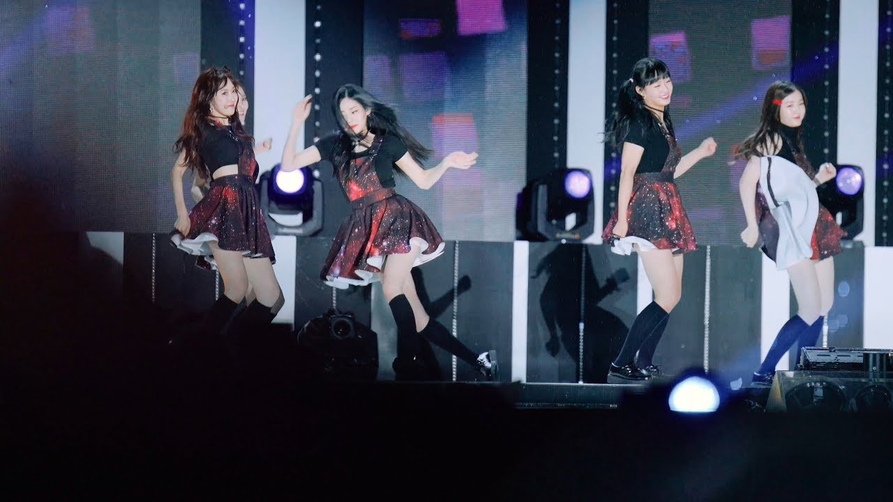 Üyeler tenis etekleri ve spor ayakkabıları ile kareografiye uyum sağlıyorlar ve tam gaz tezahürat yapıyorlar.