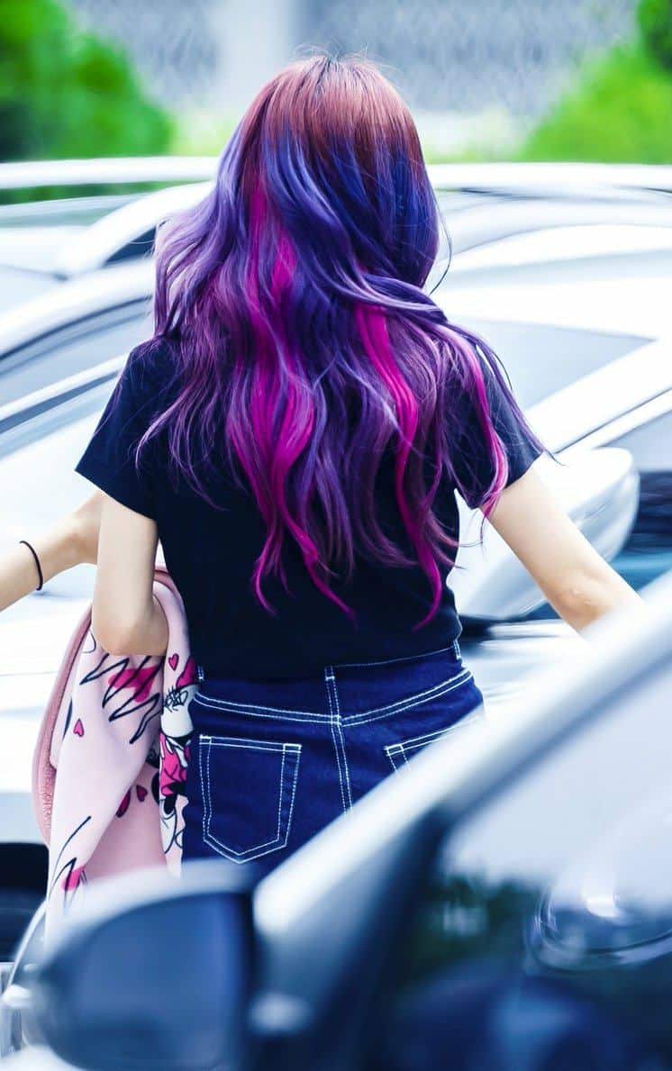 Artık saç renginin solması gibi bir durum vardı saçlarını parlak mor ile birlikte çok güzel bir pembe tona dönüştürdü