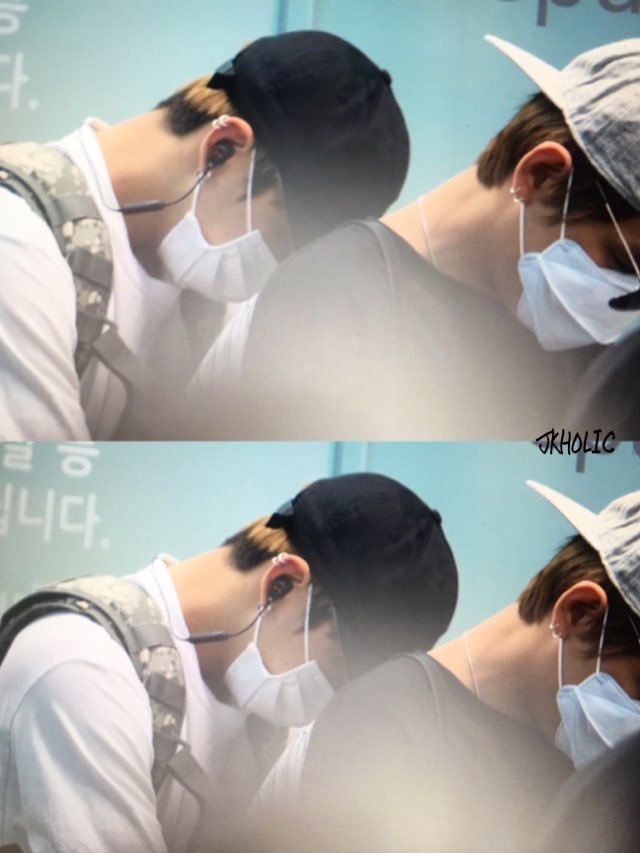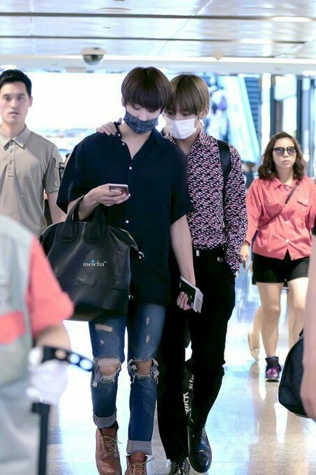 8) V ile vakit geçiren Jungkook onu havaalanında korudu(Menajer Sejin’le birlikte)