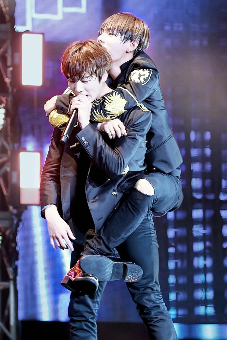 2)Jungkook tam anlamıyla bir performans sırasında V’yi omuzlarında taşıdığında