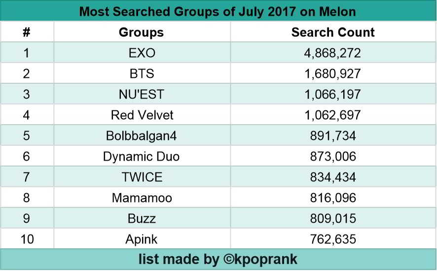 Kaynak: Kpoprank (Twitter)
