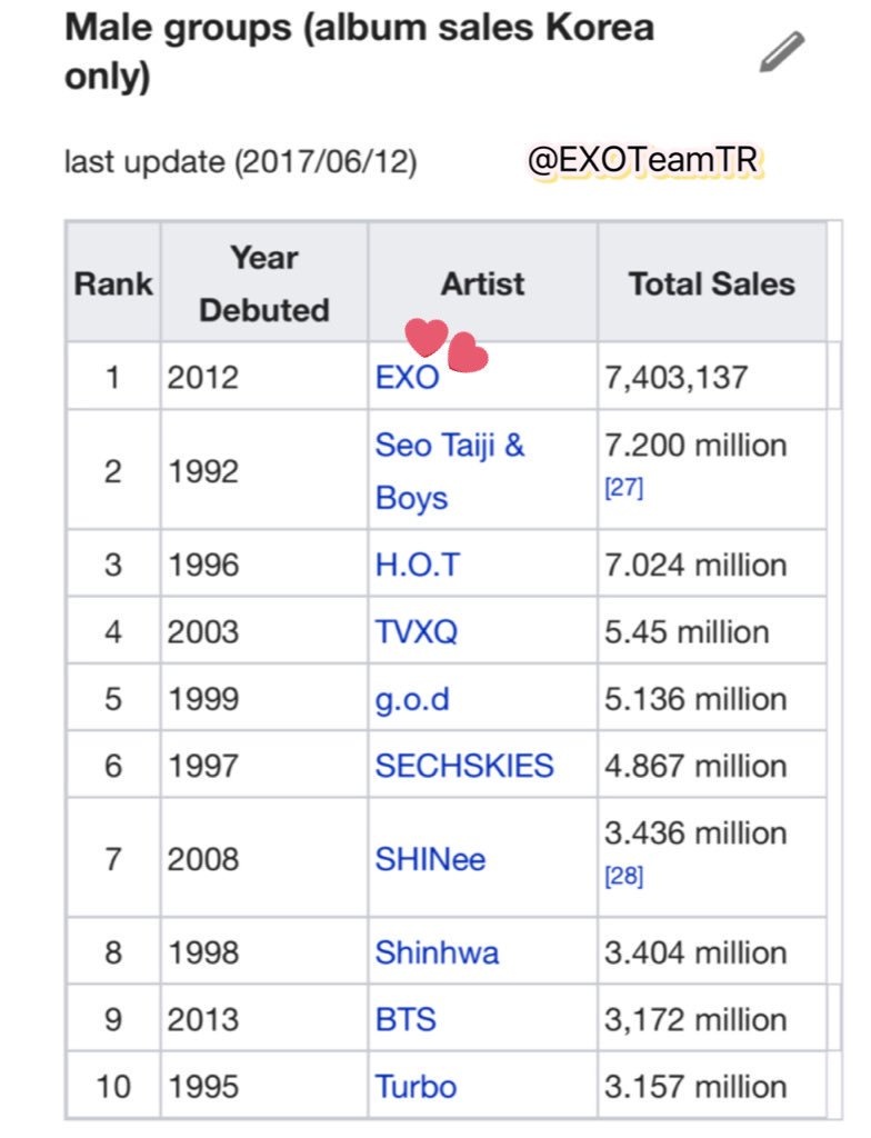 EXO’nun, “4 Milyon Satan” unvanını almaya çok az kaldı. Daha önce yayınlanan albümlerinde milyon satış gerçekleşen EXO’nun, Ağustos ayındaki satış rakamları eklenince bu unvanı kısa bir sürede alacak gibi görünüyor.