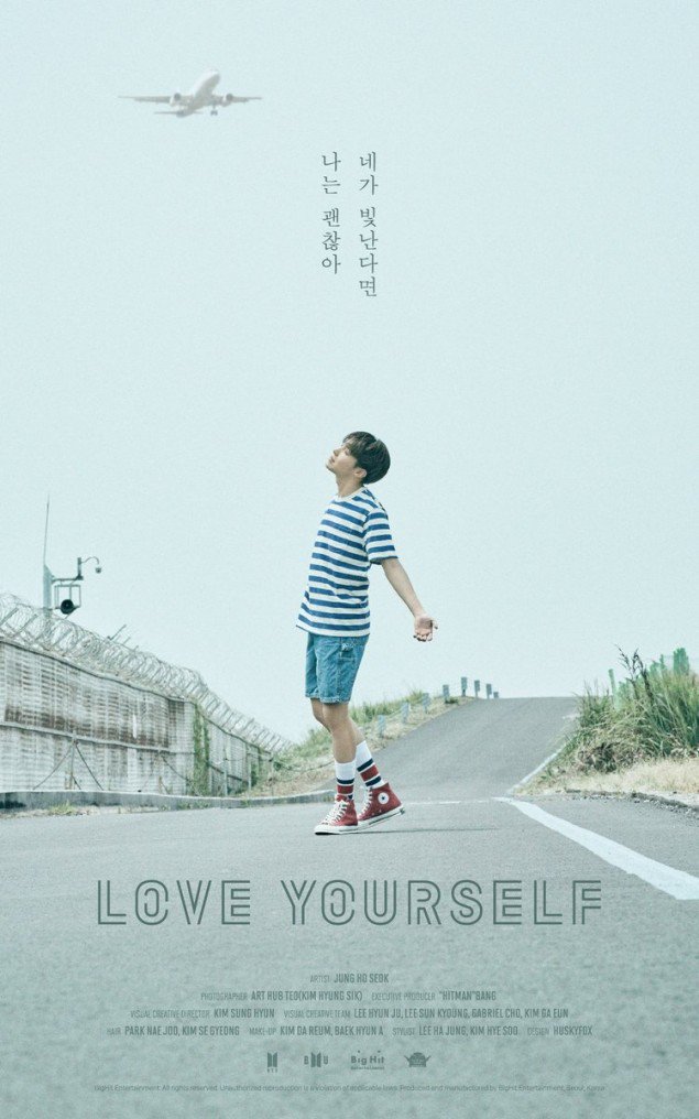 Posterde J-Hope bir havaalanının ortasında duruyor.Mesajında “eğer parlıyorsan ben iyiyim” diyerek fedakarlık duygusunu takip ediyor gibi görünüyor.