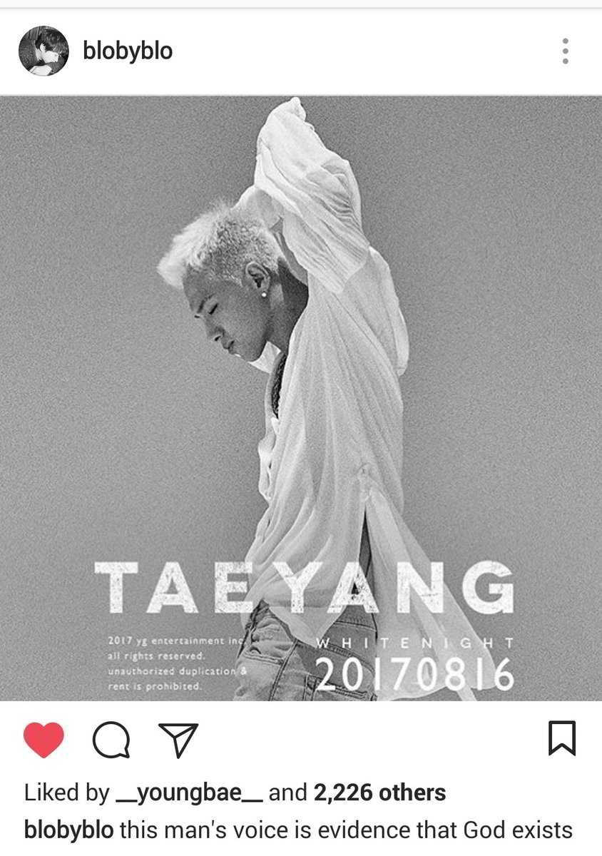 Tablo, Taeyang’ın “White Night” albüm kapağının bir resmini yayınladı: “Bu adamın sesi Tanrı’nın varlığının kanıtıdır.” yazdı.