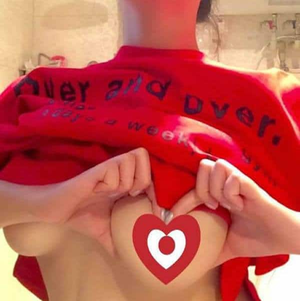 Baş parmağını ve diğer parmaklarını kullanan kadınlar meme kalpli fotoğraflarını çekiyor ve Weibo’ya yüklüyor