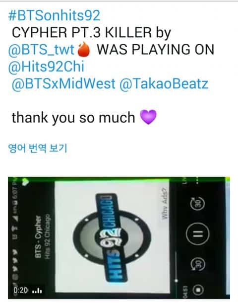 BTS grubunun şarkıları Amerika‘daki ünlü radyolardan birinde çalındı.Dili İngilizce olmayan yabancı bir şarkının çalınması çok nadir görülen bir durum.