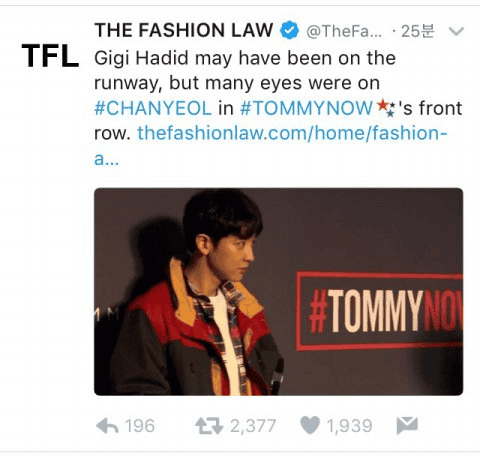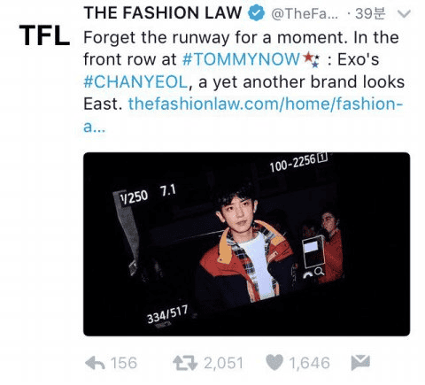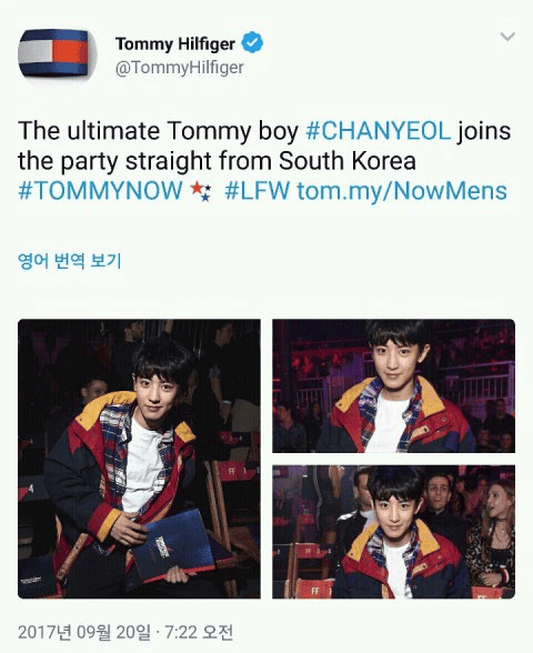 Chanyeol, Londra Moda Haftası kapsamında gerçekleşen Tommy Hilfiger defilesine Güney Kore temsilcisi olarak katıldı. Tommy Hilfiger onun ile fotoğraf paylaştı ve Twitter hesabından ona “Tommy Boy” dedi.
