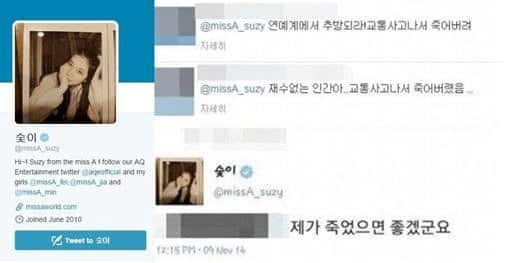 Ne zaman bir anti fanı Suzy’ye Twitterda sürekli defalarca onun ölmesini istediği tweetler atarsa, Suzy havalı ve kayıtsız bir şekilde yanıtlar. Antisi böylece ettiği lafla kalır.