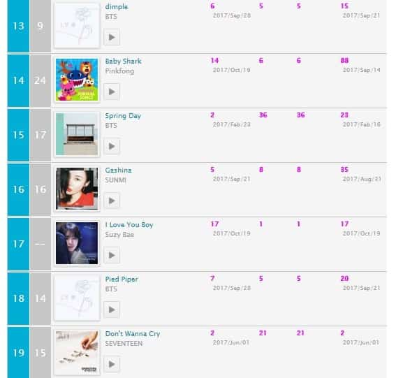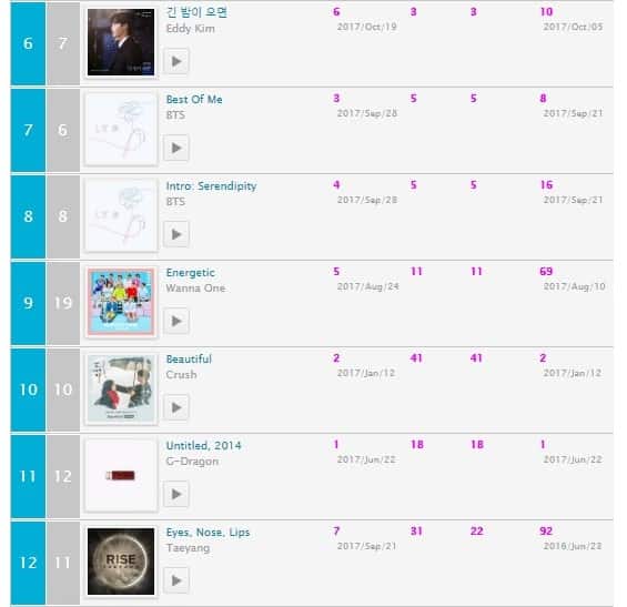 KKBOX (Listeler, ülkeler bazında değildir – Kore şarkıları bazındadır)