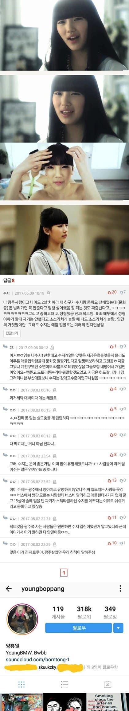 (Ç/N: Yorumlar basitçe ”Suzy’i tanıyan” insanlardan geliyor ve kişiliğinin kötü olduğu vs. gibi şeyler söylüyorlar.Sadece bir kaçını çevirdik.)