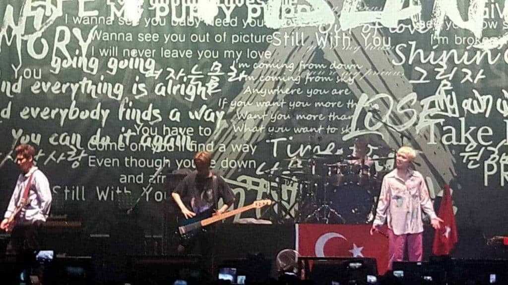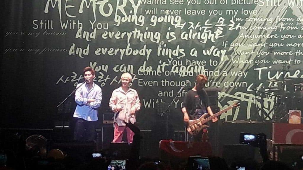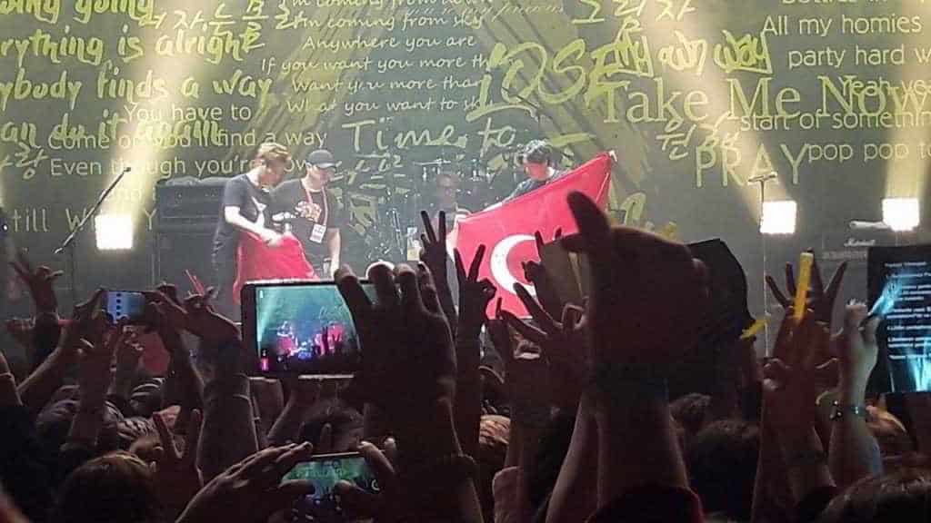 Türkiye’de yaşayan Kore severlerin merakla beklediği konser bu akşam 17:00’da başladı ve 20:00 gibi sona erdi. Konserden sıcağı sıcağına cep telefonundan çekilmiş resimleri aşağıda görebilirsiniz. Özellikle günün anlam ve önemi sebebi ile grubun konser esnasında Türk bayraklı jesti gönüllerde taht kurdu.