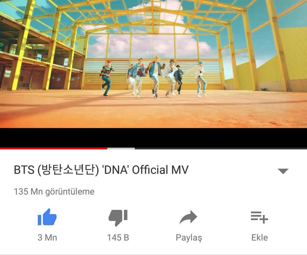 ‘‘DNA” klibi, şimdi de Youtube üzerinde 3 milyon beğeni alarak, BTS grubunu bu rakama ulaşan ilk K-Pop grubu yaptı.