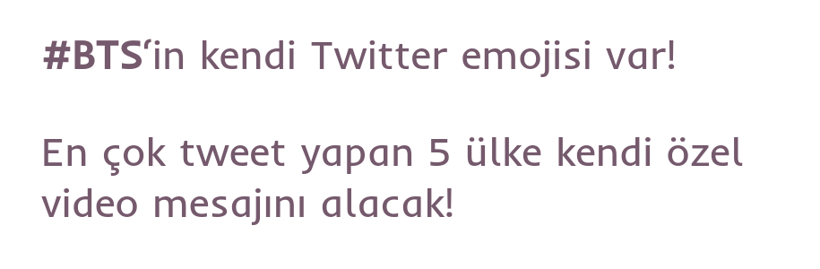 #BTS‘in kendi Twitter emojisi var! En çok tweet yapan 5 ülke kendi özel video mesajını almıştı! pic.twitter.com/px85Ud8RDW