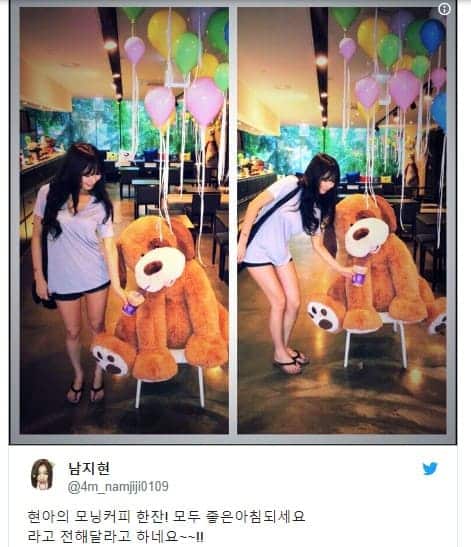 4Minute’un eski üyesi arkadaşı Nam Ji Hyun’un da bahsettiği gibi, HyunA sabahları sıcak bir kahve dışında hiç bir şey aramıyor.