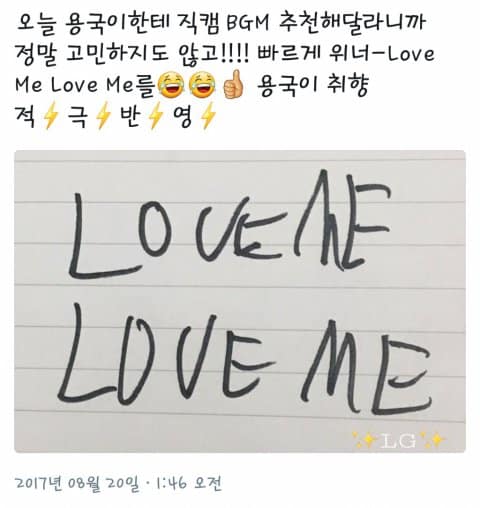 “Yongguk oppa’dan bana iyi bir BGM müziği önermesini teklif ettim ve tereddüt etmedi ve “Winner’s Love me love me” dedi.