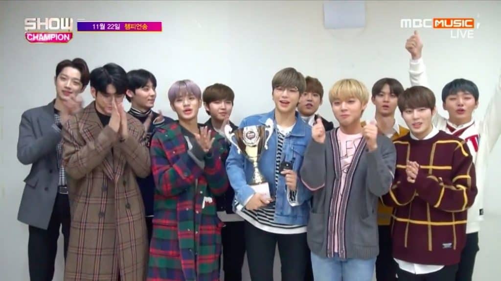 Wanna One birinci oldu ve bugün şovda yer almadıkları için elindeki kupayla hayranlarına teşekkür ettikleri bir video yayınladı.Ev sahipliği yapan Kim Shin Young’da bunun yılın son “Show Champion” kupası olduğunu söyledi